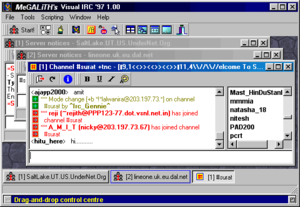 Most web-hosted chat rooms can cope with one or two dozen users before they start to slow down. So dedicated chatters use chat clients that link to chat server networks, like Internet Relay Chat (IRC). You can get 50 active chatters and hundreds of lurkers (people who read but don't type) in an IRC channel.
