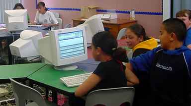 11 KB | Dave | E-consultation is child's play. A 16-year old facilitator training civil servants how to run a chat over the Internet, during the 2001 e-consultation workshop in Belfast. | 1 |
